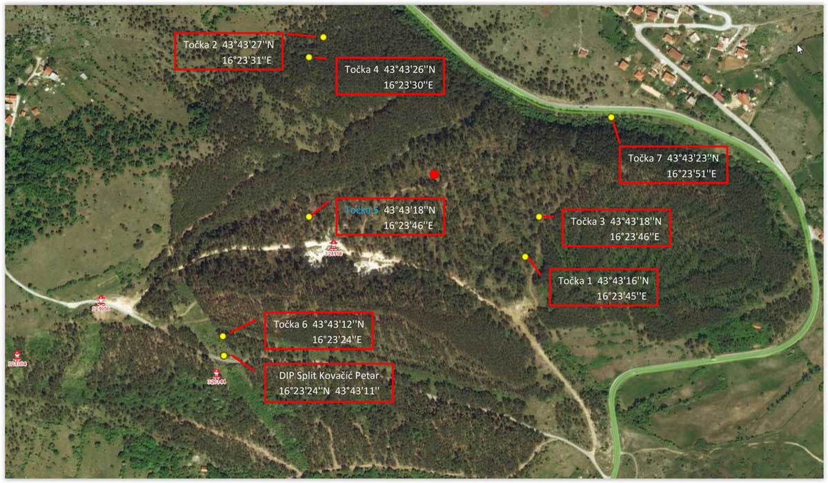 Istim žarišnim točkama i područjima su određene koordinatne točke koje su se u Vatrogasnom operativnom središtu RH u Divuljama pozicionirale na satelitsku kartu područja i proslijedile zemaljskim vatrogasnim snagama na terenu čime ssu snage na terenu mogle djelovati na uočene konkretne žarišne točke.