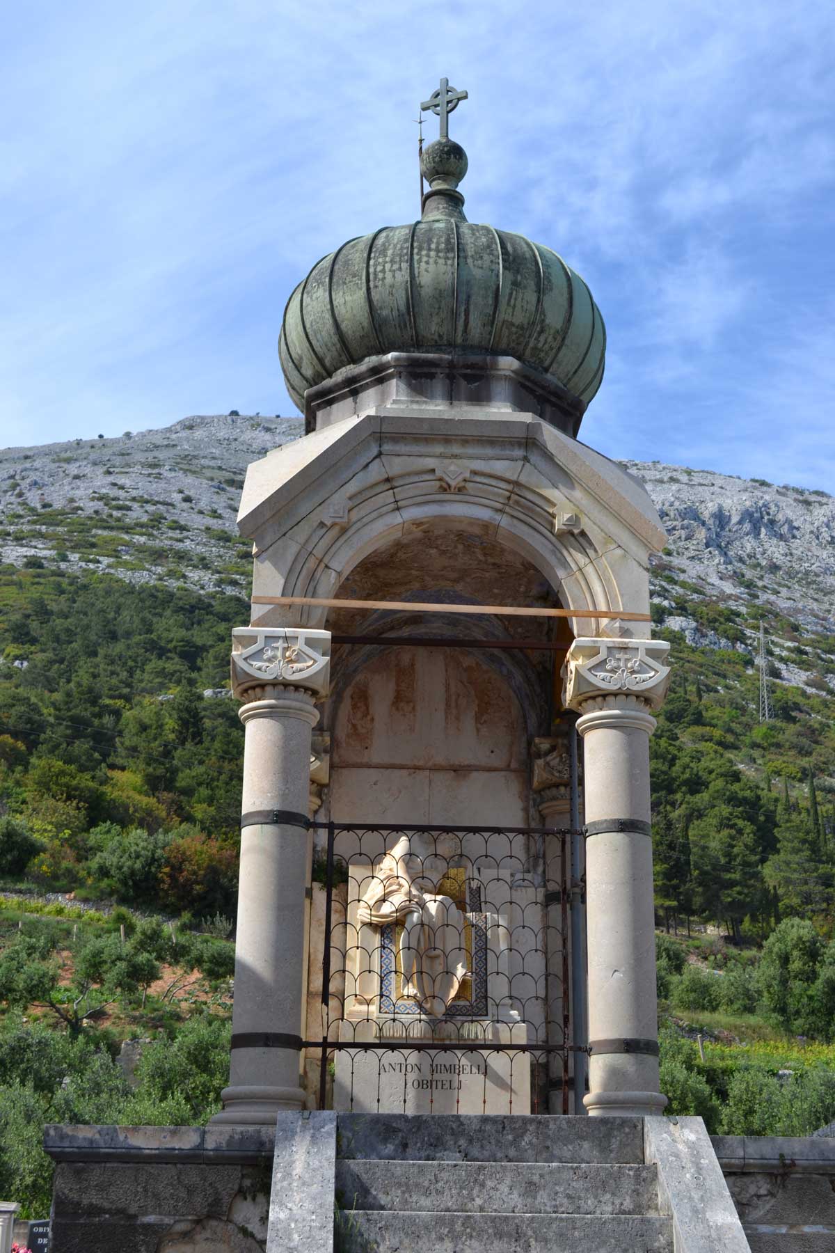 Pokraj samostana nalazi se groblje u kojem je i lijepi mauzolej obitelji Mimbeli kipara Ivana Rendića. Priča o tom spomeniku priča je o izumiranju obitelji Mimbeli.