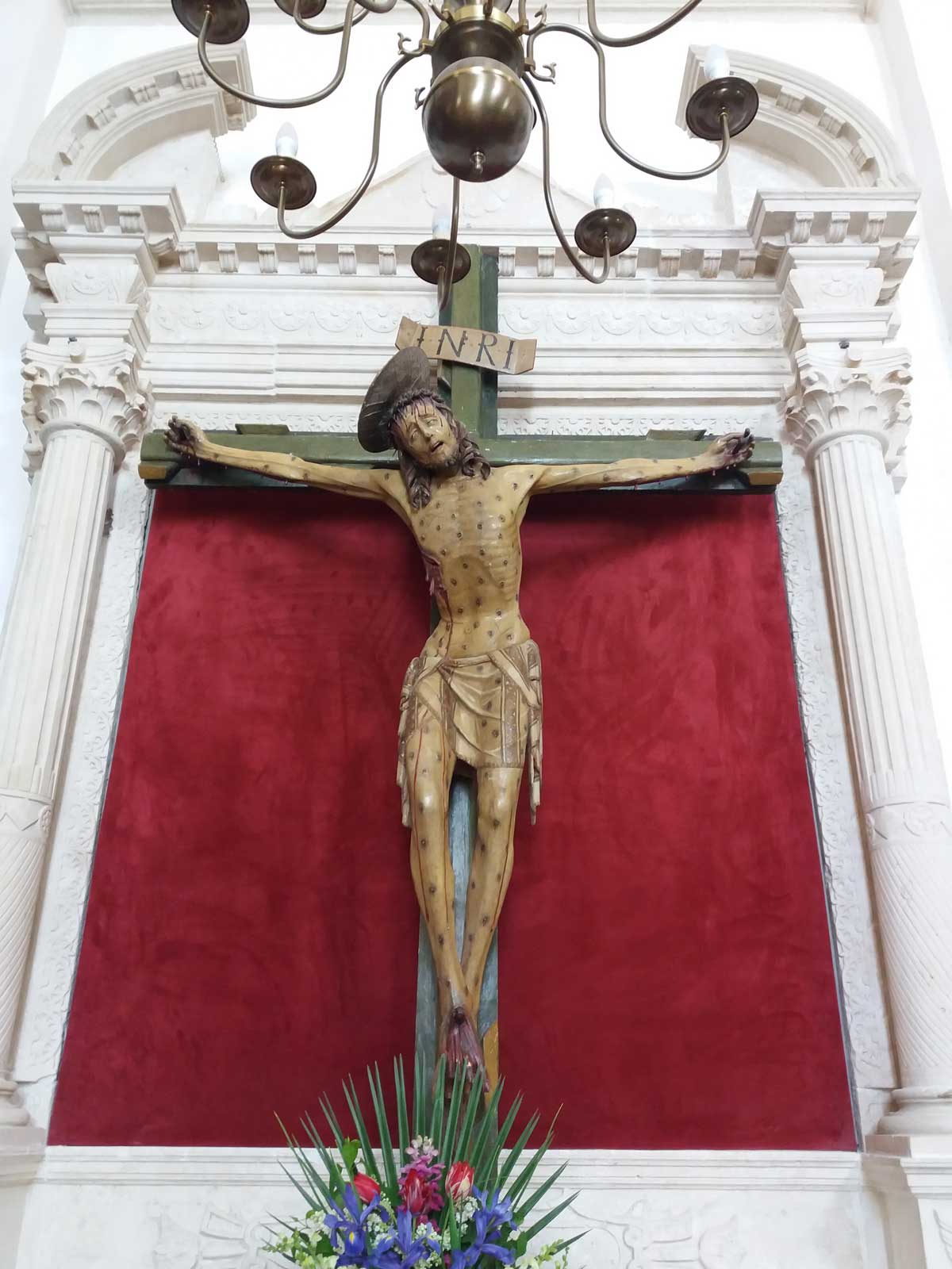 U crkvi se nalaze neprocjenjivo vrijedni eksponati. Meni najimpresivniji je svakako Križ od otoka, nastao u 15. stoljeću, djelo Jurja Petrovića, kojem su se od davnina dolazili klanjati s cijelog otoka Korčule. Križ je posebno vrijedan i stoga jer je Isus u naravnoj veličini, s licem koje kad ga se gleda s jedne strane pati, s druge ima blagi osmijeh, a iz jedne perspektive čini se mrtav.