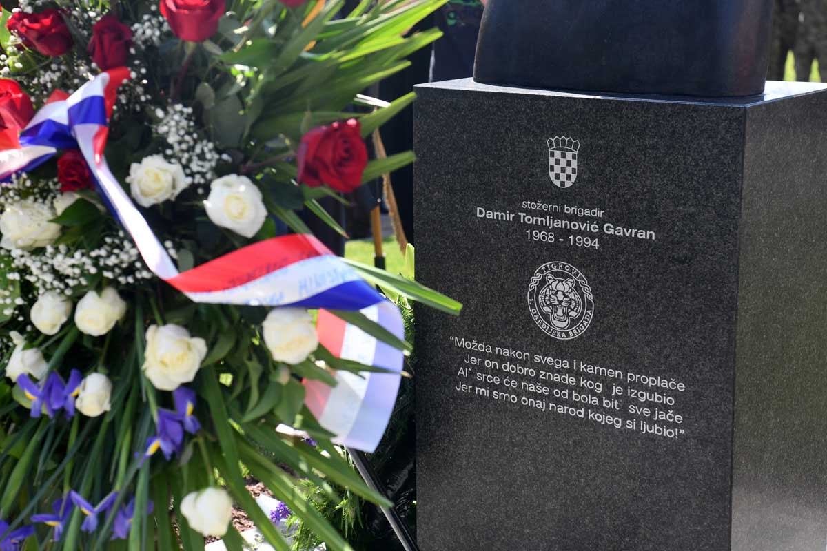 Poprsje Damira Tomljanovića Gavrana, koje je izradio akademski kipar Neven Bilić, blagoslovio je generalni vikar vojnog ordinarijata don Marko Medo, a nakon toga uzvanici su položili vijence.