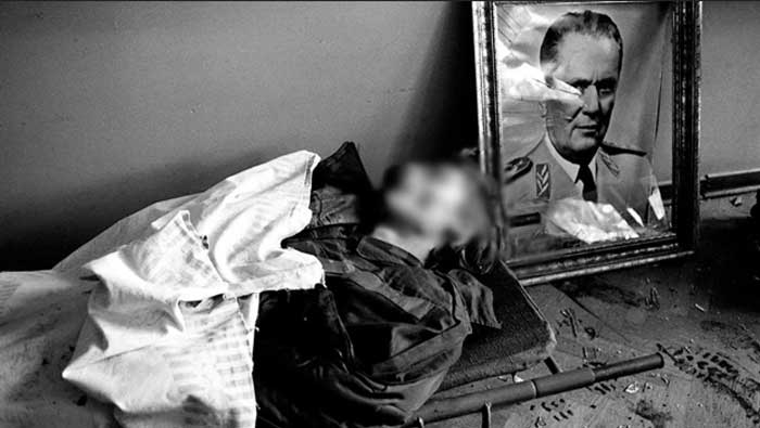 Upravo tada nastala je i jedna od najpotresnijih fotografija iz Domovinskog rata na kojoj je uz mrtvo tijelo mladića lijepog lica izložena uokvirena slika Josipa Broza – Tita.
